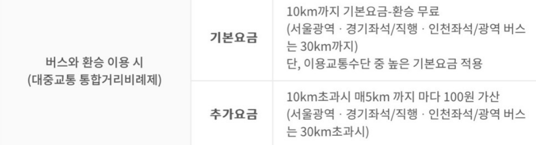 버스환승 총 10km까지는 무료! 10km 넘어갈 시 5km당 100원 붙습니다! 여기서 알아둬야 할 점!