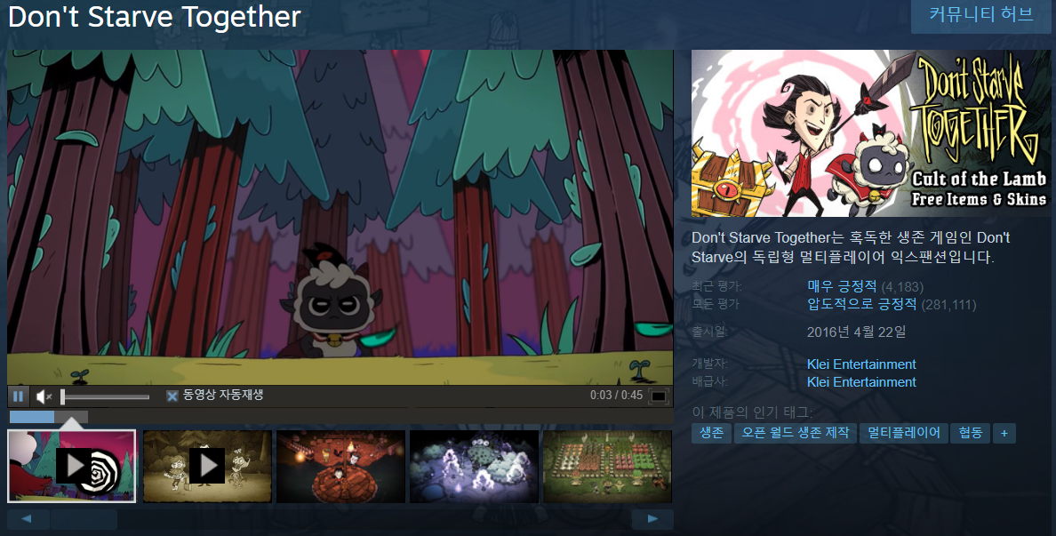 - 재미 하나는 확실히 있습니다. 비슷한 생존 게임 포레스트보다 훨씬 할게 많고 재밌어요. 모드까지 되면서 한글도 지원합니다.